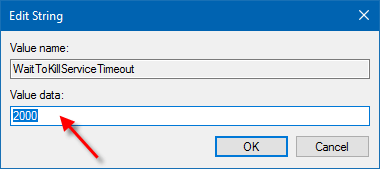 V pravém podokněOvládací složka, poklepejte naWaitToKillServiceTimeoutjej upravit.