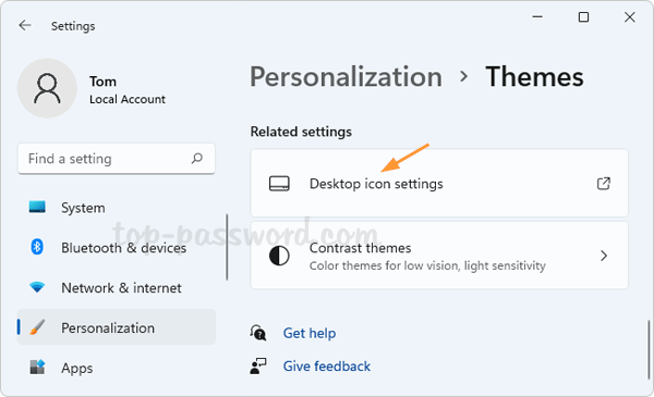 - V aplikaci Nastavení se otevře stránka Přizpůsobení. Klikněte naTématakategorie v pravém podokně.