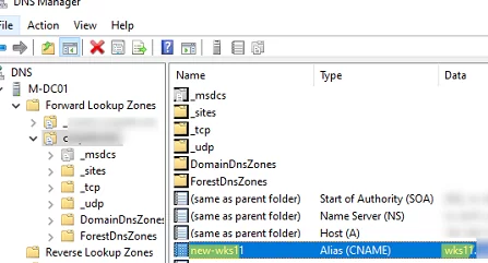 Ve scénářích migrace je často nutné mít možnost přistupovat k serverům Windows (počítačům) pomocí starého i nového názvu hostitele. Nejjednodušší způsob, jak zpřístupnit počítač pod novým názvem, je přidat alias (CNAME) k DNS odkazující na starý FQDN název (záznam A).