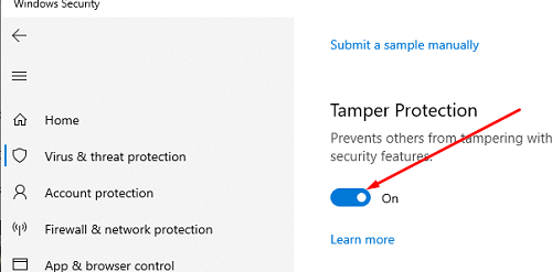 Pokud obdržíte a0x80070005 (přístup odepřen)chyba při resetování databáze, musíte dočasně zakázatOchrana proti manipulacimožnost v grafickém uživatelském rozhraní Windows Security.
