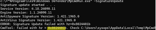 "%ProgramFiles%Windows DefenderMpCmdRun.exe" -SignatureUpdate