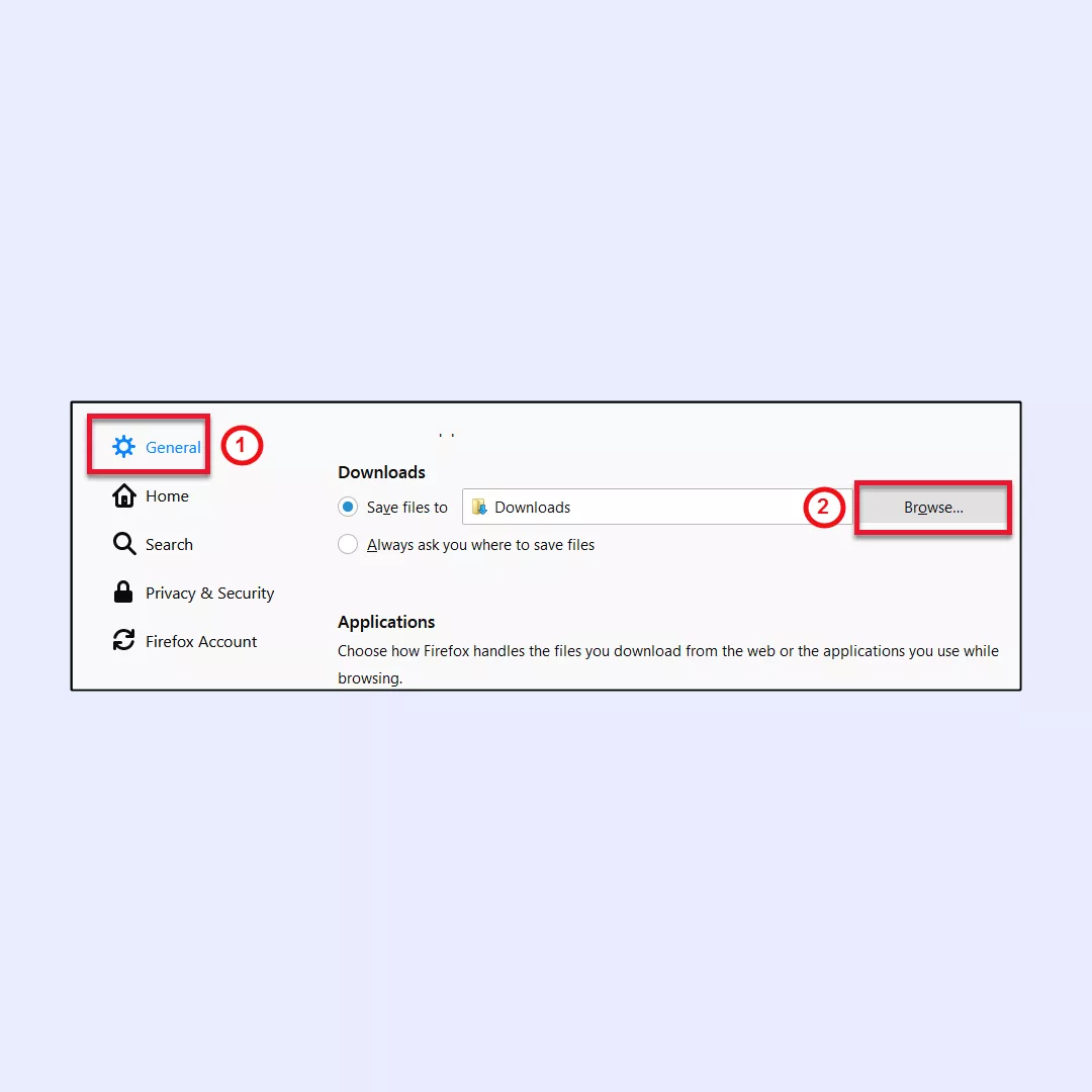 2. Přejděte naGenerál>Stahovánía klikněte naProhlížettlačítko.