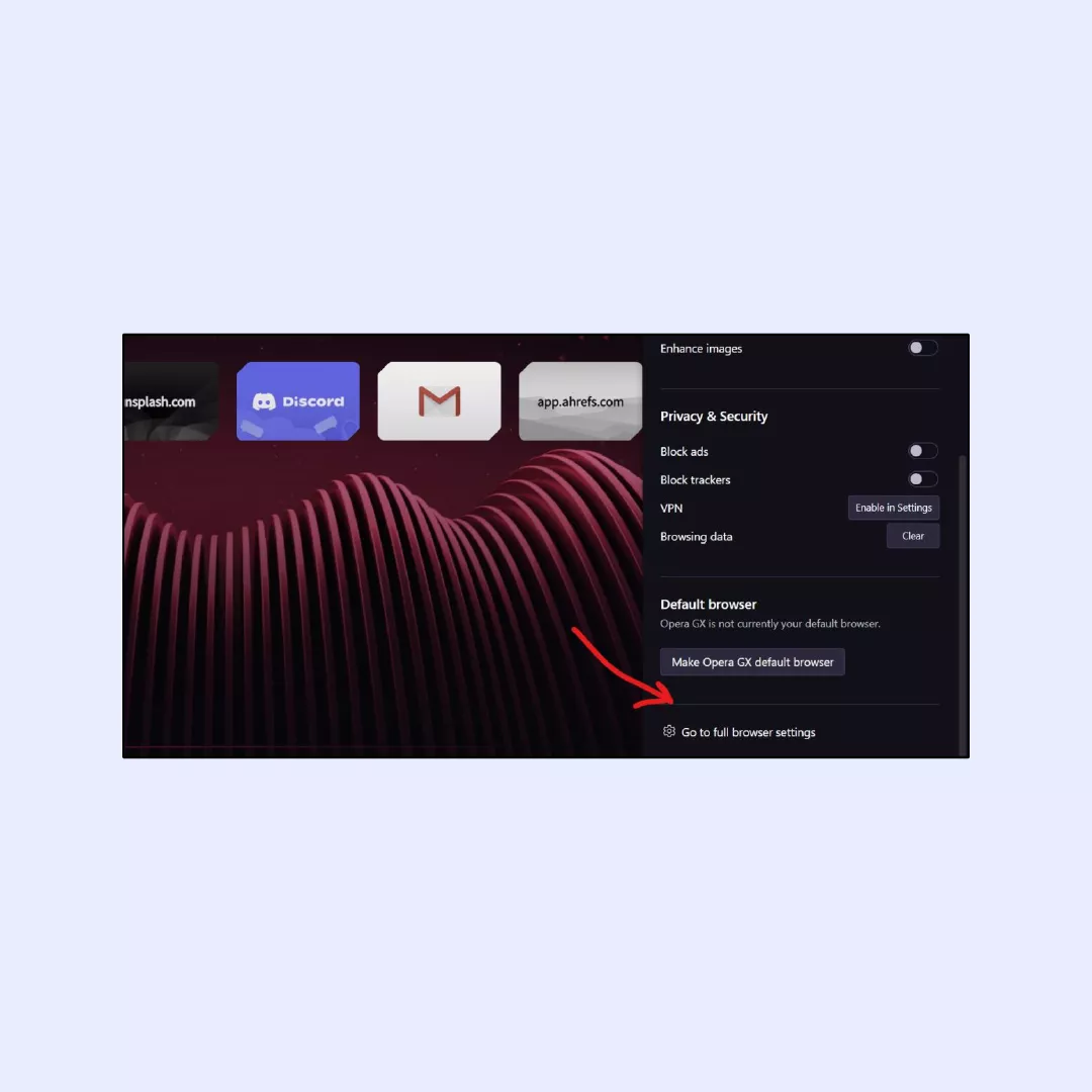 2. Přejděte dolů a otevřeteÚplné nastavení prohlížečemenu.