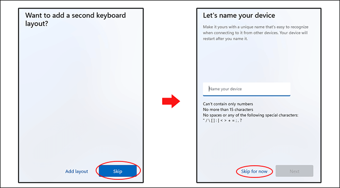 Krok 3:Když budete požádáni o přidání druhého rozložení klávesnice, klikněte na Přeskočit a poté na tlačítko Přeskočit nyní při pojmenování okna zařízení.