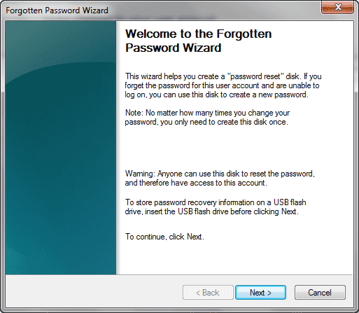 V systému Windows 7 je v části Uživatelský účet v Ovládacích panelech funkce, která vám umožňuje vytvořit disk pro resetování hesla. Jednoduše vytvoří šifrovaný klíč a uloží jej na vyměnitelné médium. Lze jej použít, když jste literárně zapomněli heslo k tomuto účtu, kterým se přihlašujete do Windows 7 a vše, co musíte udělat, je mít k dispozici toto vyměnitelné médium a vložit jej do vašeho Windows 7. Poté vám umožní resetovat heslo, pokud máte správný šifrovaný klíč. Je dobré si ho vytvořit pro sebe nebo pro své staré rodiče, kteří mají na heslo špatné vzpomínky.