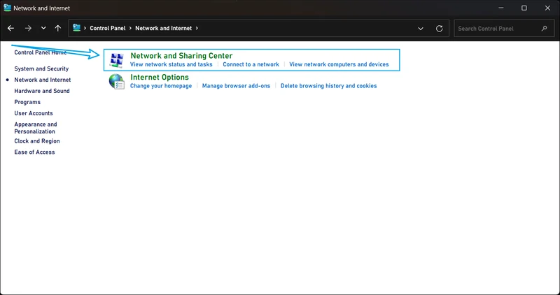 Krok 1Otevřete Ovládací panely a přejděte na Síť a Internet.