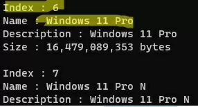 V tomto příkladu exportujeme pouze soubor WIM Windows 11 Pro Edition z obrazu ESD (jeho index je6, tak upřesníme/SourceIndex:6v dalším příkazu):