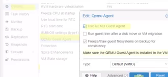 Pak přejděte naMožnostikartu a povolteHostující agent QEMU.