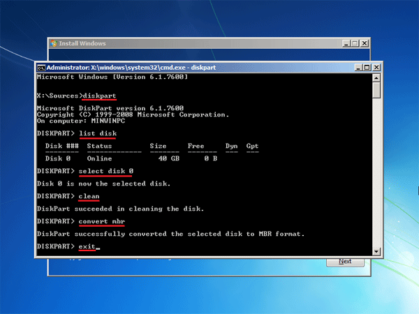 Nyní musíme převést pevný disk z GPT na MBR, protože systém Windows 7 nelze nainstalovat na oddíl GPT. Postupujte takto: