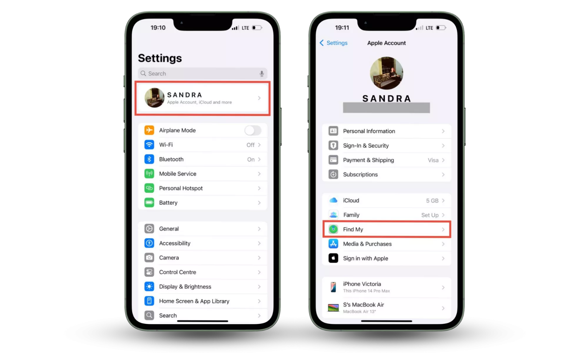 Krok 1-2. Nastavení > ID > Najít > Sdílet moji polohu > Vypněte možnost Sdílet moji polohu.3. Vypněte aplikaci Najít