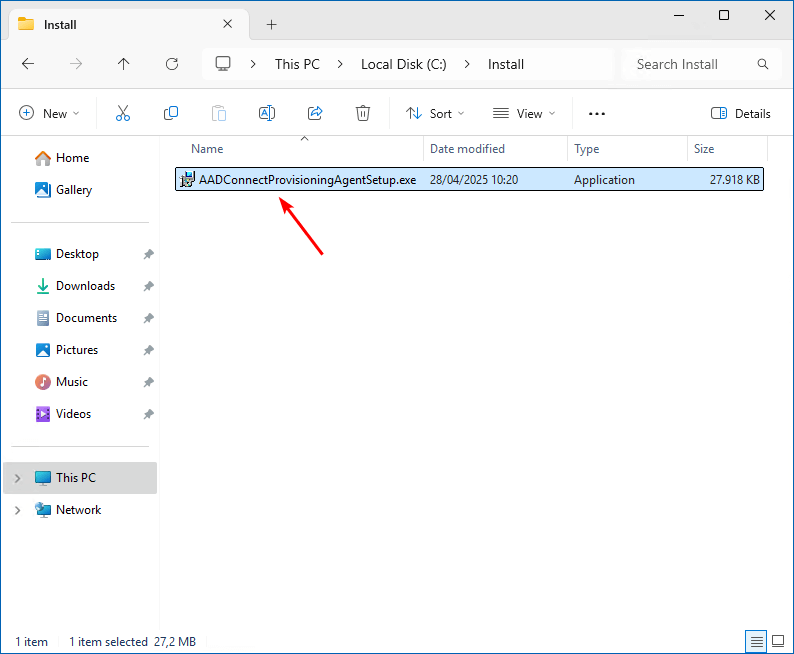 - Spusťte stažený instalační program Microsoft Entra Connect Provisioning Agent jako správce
