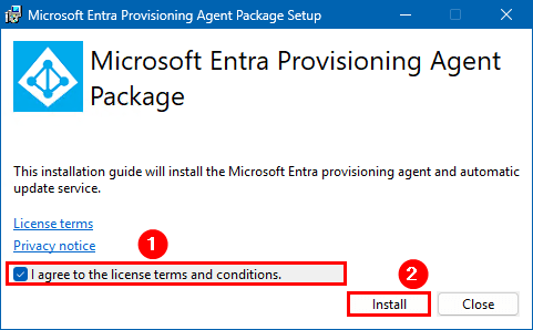 - Instalace zahájí instalaci Microsoft Entra Provisioning Agent