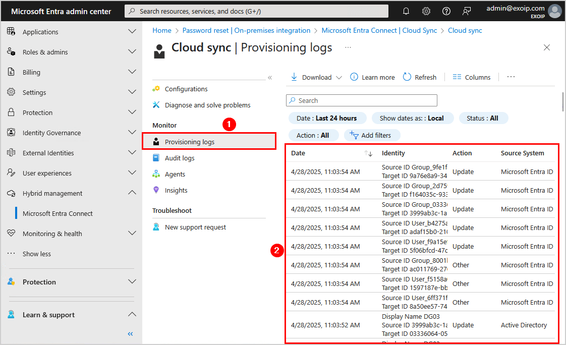 Krok 6. Zkontrolujte protokoly Microsoft Entra Cloud Sync