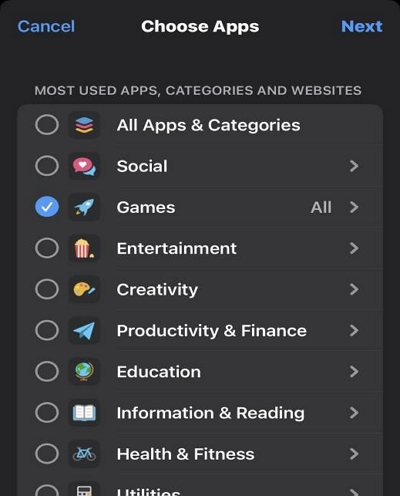 Krok 8:Vyberte „aplikaci“, ke které chcete přidat omezení.