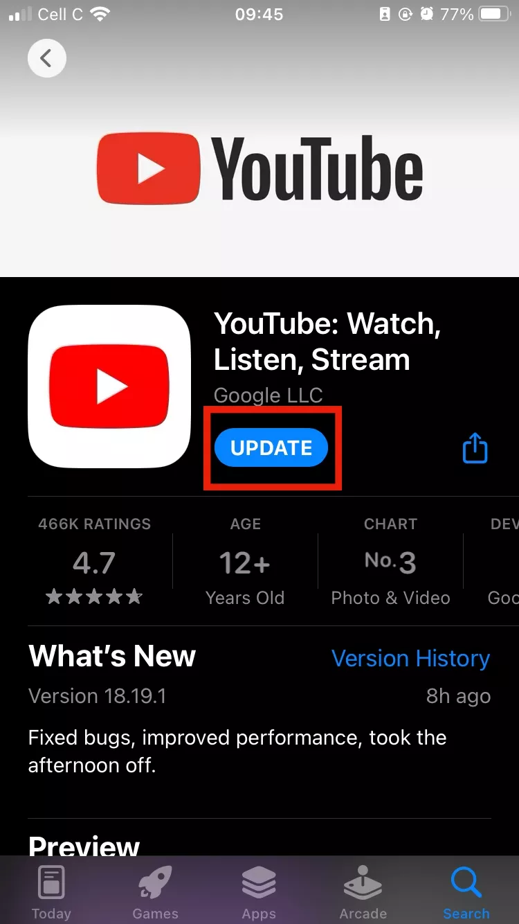 - Vyberte aplikaci. Tím přejdete na stránku aplikace. Pokud je nutná aktualizace, anAktualizovatpod názvem aplikace se zobrazí tlačítko. Klepněte naAktualizovata počkejte na dokončení aktualizace.