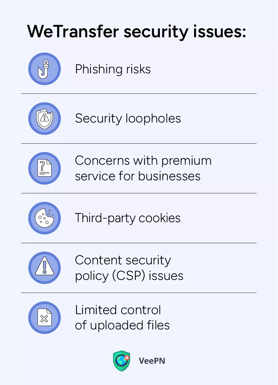 Celkově WeTransfer dělá dost pro bezpečnost svých uživatelů. Znamená to ale, že neexistují vůbec žádné hrozby? Bohužel ne. Pojďme zjistit, jaké bezpečnostní problémy WeTransfer byste si měli být vědomi před použitím této služby.
