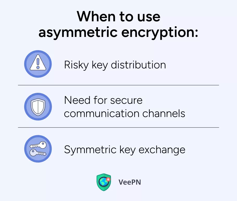 Asymetrické šifrování se obvykle používá v situacích, kde je klíčová bezpečná výměna klíčů, jako jsou digitální podpisy, zabezpečená e-mailová komunikace (například PGP) a SSL/TLS pro bezpečné procházení webu. Používá se také k vytvoření zabezpečeného kanálu pro výměnu symetrických šifrovacích klíčů v protokolech, jako je HTTPS. Tento článek odhaluje další podrobnosti o nejrozšířenějších případech použití asymetrického šifrování.