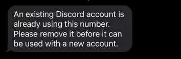 "Stávající účet Discord toto číslo již používá. Před použitím s novým účtem jej prosím odstraňte."