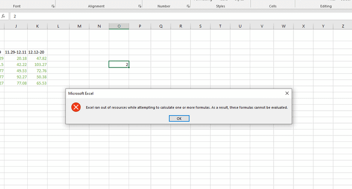 Pokud jsou v buňkách nesprávné vzorce, v aplikaci Microsoft Excel došly prostředky. Pokud přidáte nesprávný vzorec nebo v některých případech s cyklickými odkazy, Excel jej přestane počítat a spustí chybovou zprávu.