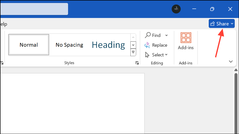 Krok 2:Sdílejte dokument. Klikněte naSharetlačítko v pravém horním rohu okna aplikace Word. Pokud soubor ještě není na OneDrivu nebo SharePointu, Word vás vyzve k jeho nahrání.