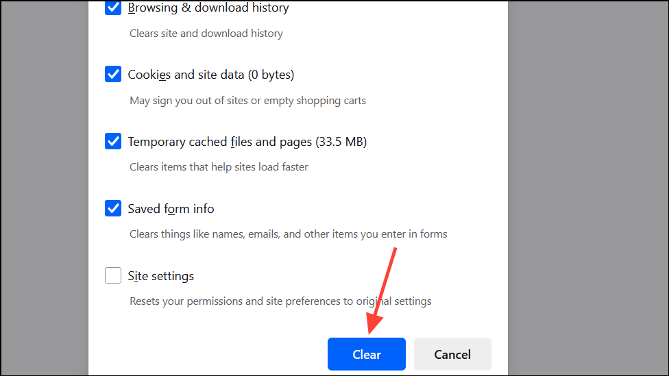 Odstranění zastaralých nebo poškozených souborů v mezipaměti a souborů cookie často obnovuje načítání obrázků ve Firefoxu. Data uložená v mezipaměti se mohou stát zastaralými nebo mohou být v konfliktu s novým obsahem webových stránek, což může vést k nefunkčním obrázkům nebo chybějící grafice.