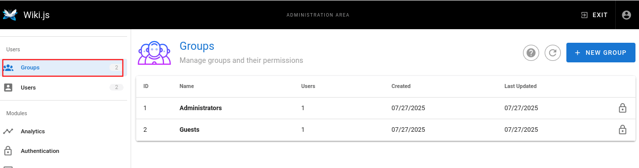 VSkupinymůžete vytvářet skupiny uživatelů, přiřazovat členy a nastavovat oprávnění na úrovni skupiny pro řízení přístupu. Pomocí skupin organizujte uživatele podle rolí a spravujte jejich přístup konzistentně na vaší wiki.