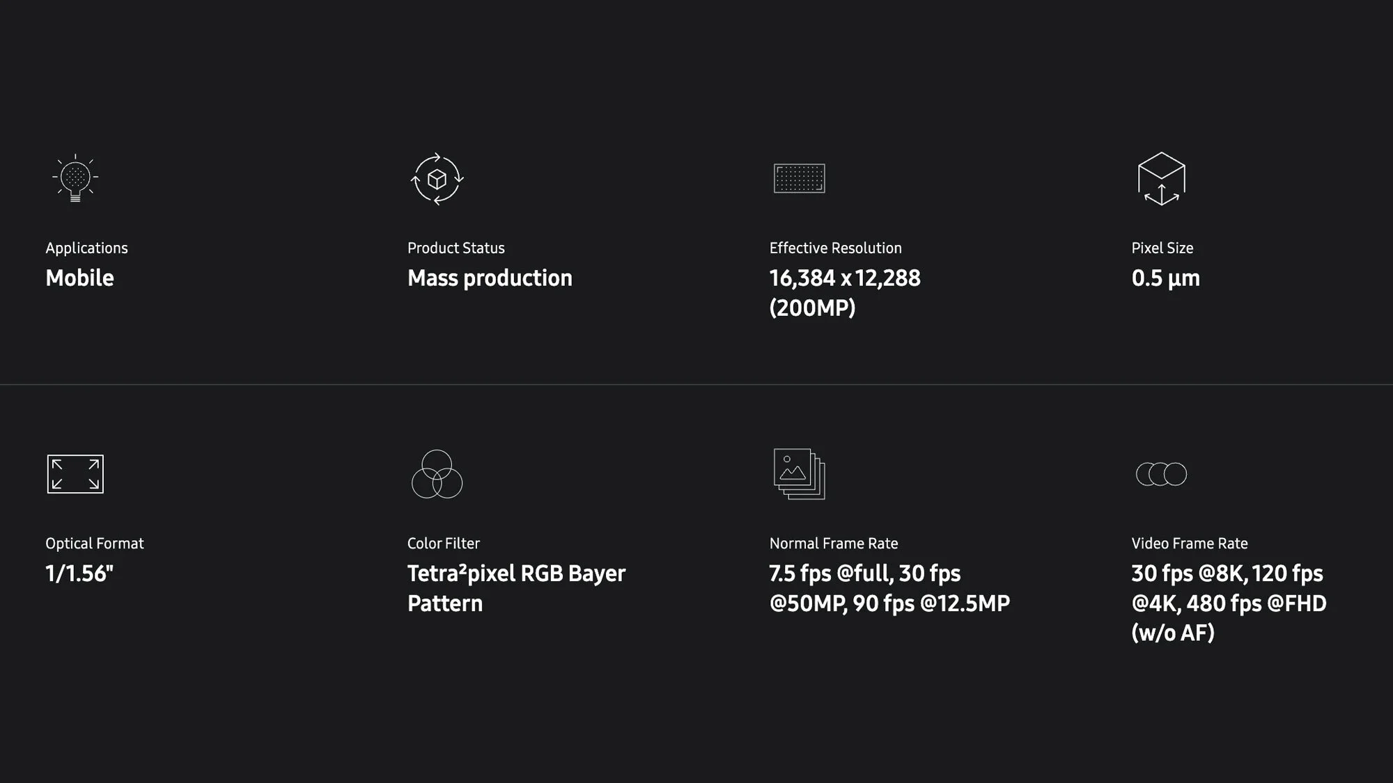 nový 200MP snímač fotoaparátu, který jako první na světě disponuje 0,5µm pixely. Jedná se o fyzicky malý snímač, což znamená, že je nepravděpodobné, že by se vyskytoval na hlavním fotoaparátu jakéhokoli vlajkového telefonu. Je však perfektní pro teleobjektivy a periskopické kamerové systémy a pravděpodobně jej brzy uvidíme v akci.