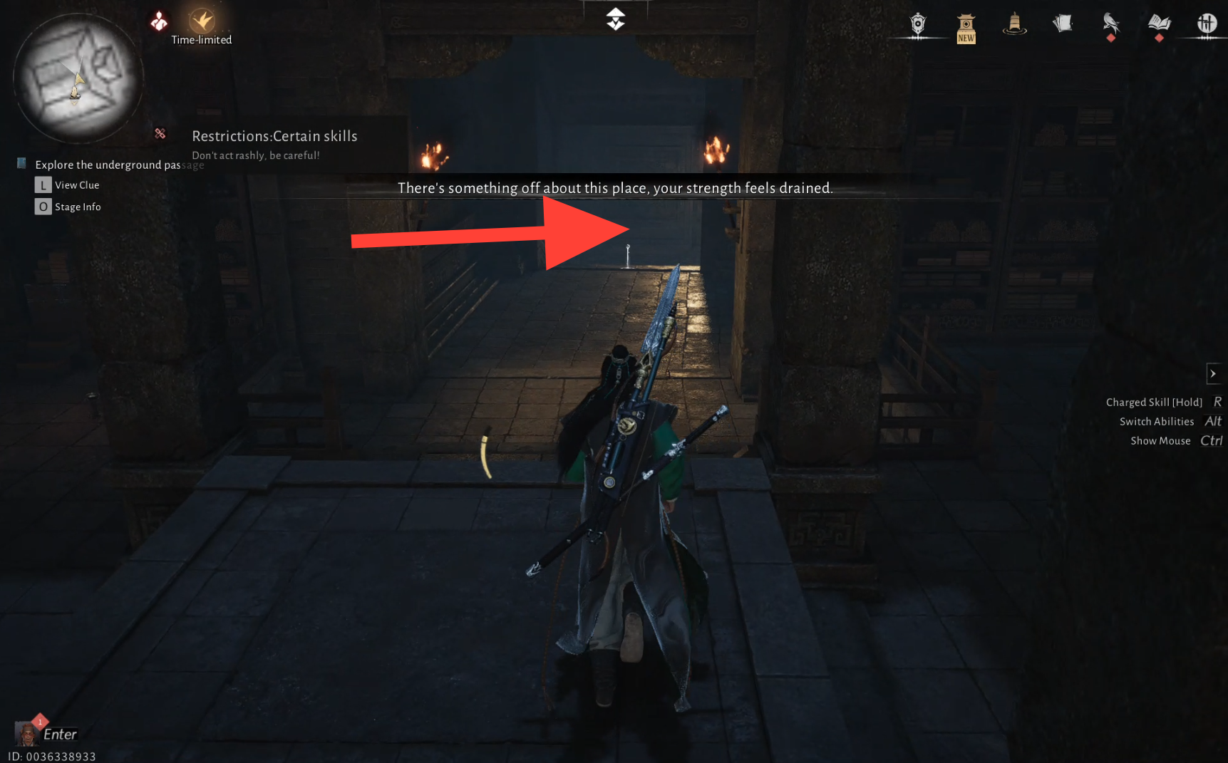 Vraťte se do Hlavní síně, jděte cestou vpravo a opakujte stejné kroky jako předtím, abyste se dostali nahoru a sesbírali Blackcloud Long Sword.