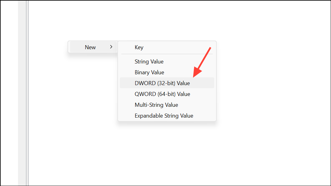 Krok 4:sHistorie souborůvybraný klíč, klepněte pravým tlačítkem myši v pravém panelu a vyberteNové > Hodnota DWORD (32 bitů).a pojmenujte toZakázáno.