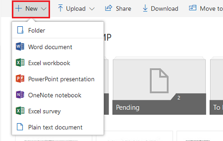 - Můžete dokonce vytvářet standardní soubory Microsoft Office, jako jsou Word a Excel, kliknutím na jejich příslušná tlačítka v rozevírací nabídce.