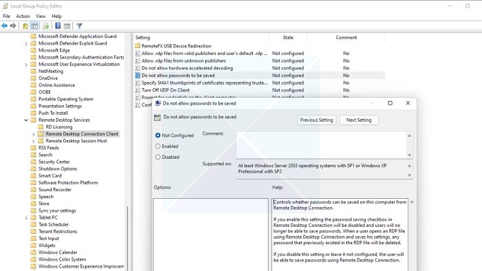 Dva způsoby vám mohou pomoci řídit ukládání přihlašovacích údajů ke vzdálené ploše v systému Windows 11/10. Obě fungují změnou zásad skupiny v operačním systému Windows: