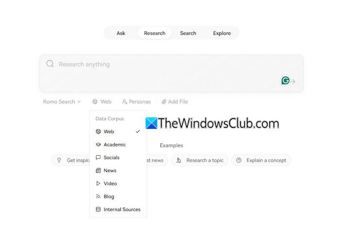 Vstupteje nejlepší bezplatný vyhledávač AI s funkcemi ochrany osobních údajů. Můžete jej použít jako AI, Research a Web Search Assistant. Kromě toho vám také umožňuje vybrat konkrétního asistenta AI pro vaše vyhledávání, včetně DeepSeek, Gemini, ChatGPT atd.