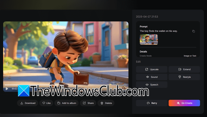 Nyní navštivte jakoukoli webovou stránku nástroje AI generátoru textu na obrázek a vložte tyto výzvy jednu po druhé, abyste vygenerovali obrázky. Pro generování obrázků z textu je k dispozici mnoho nástrojů AI. Můžete použít kteroukoli z nich. Některé z populárních nástrojů AI pro převod textu na obrázek zahrnují Microsoft Designer,, Sora AI atd. Můžete také generovat obrázky z ChatGPT.