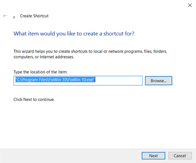 Pokud znáte cestu, zadejte ji, jinak klikněte na tlačítko Procházet a vyhledejte soubor .exe a vyberte jej.