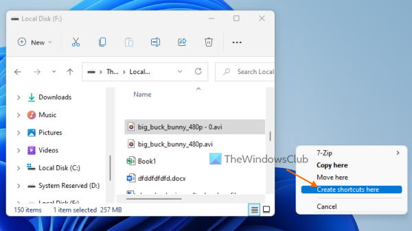 Pokud místo toho vybereteVytvořit zástupce, jeho zástupce se vytvoří na stejném místě. Poté můžete přetáhnout do požadovaného umístění složky.