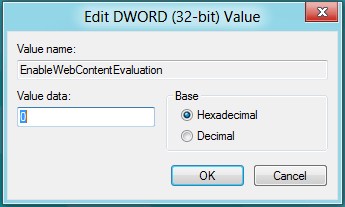Hodnoty EnableWebContentEvaluation DWORD jsou: