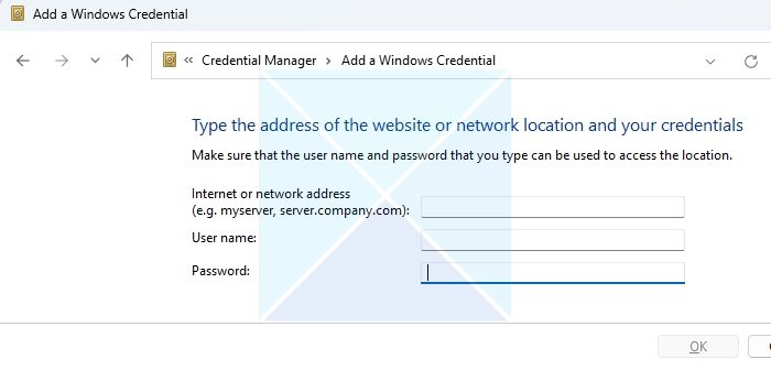2] Přidejte přihlašovací údaje do přihlašovacích údajů systému Windows