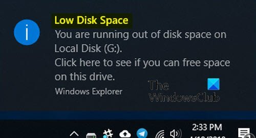 Když vidíte a, v takovém případě musíte vymazat dočasné soubory, odstranit nepodstatné soubory, odstranit nežádoucí programy a použít funkce jako Storage Sense, doporučení pro vyčištění, změnit místo ukládání souborů, přesunout své osobní soubory na externí pevné disky nebo je nahrát do cloudového úložiště.