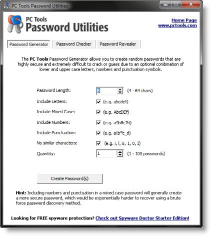 Má také nástroj pro kontrolu hesel a nástroj pro odhalení hesel. Pomocí tohoto nástroje můžete generovat zcela náhodná hesla.