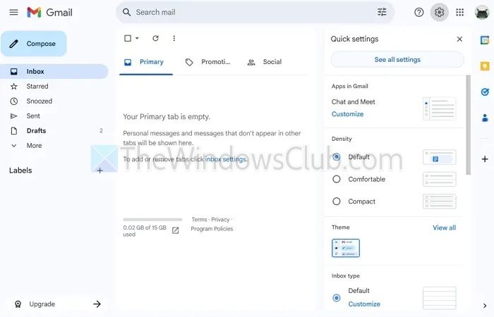 - Přejít naGmaila poté klikněte naNastaveníikonu a vyberteZobrazit všechna nastavení.