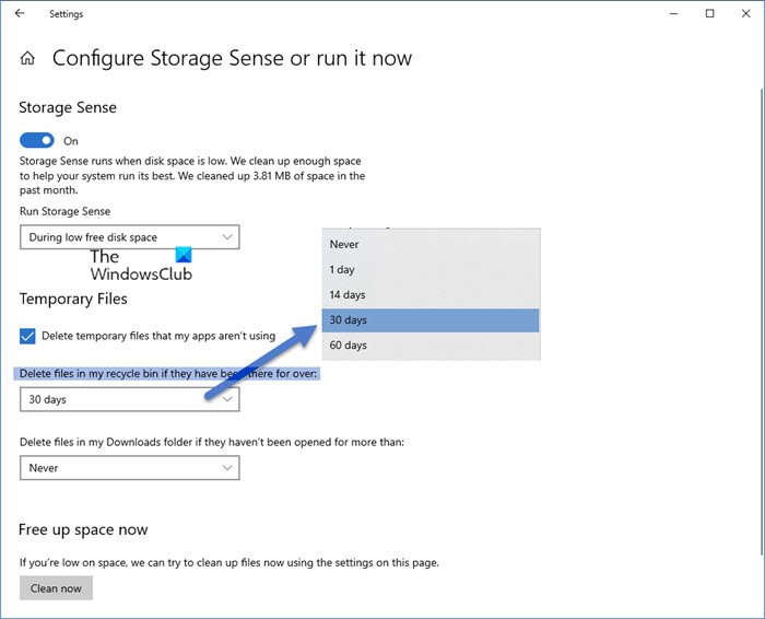 4] Použijte Store Sense k automatickému vyprázdnění koše