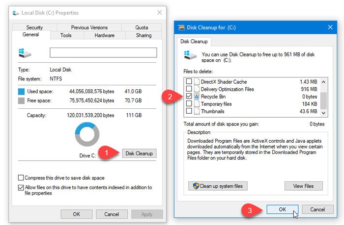 - Vyprázdněte koš pomocí nástroje Vyčištění disku