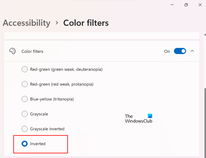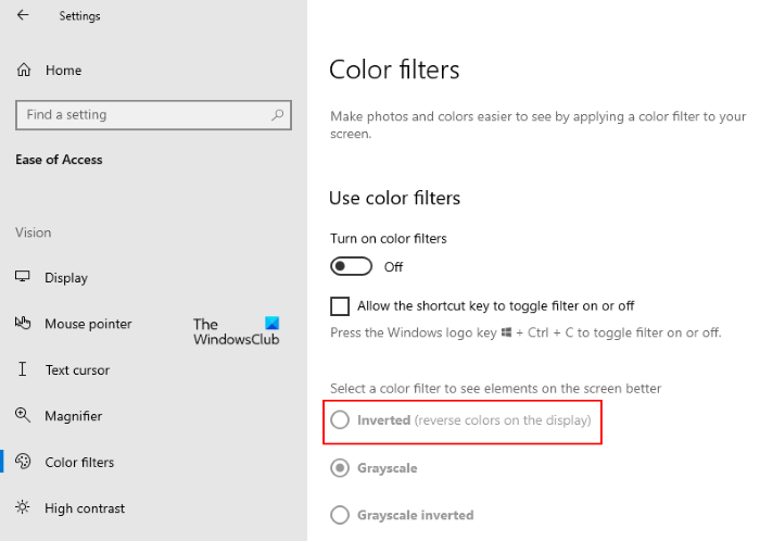 Windows 11/10 jsou dodávány skteré jsou určeny pro barvoslepé. Barevné filtry můžete povolit a zakázat v Nastavení. Tuto funkci můžete použít k invertování barvy obrázku.