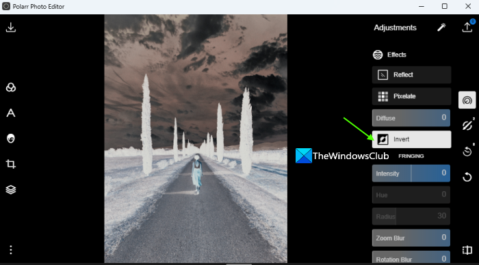 Ti, kteří hledají způsob, jak invertovat barvy obrázku pomocí aplikace Microsoft Store, mohou použítPolarr. Jedná se o bezplatný nástroj pro úpravu fotografií dostupný pro Windows, web, macOS atd. Zatímco většina jeho pokročilých nástrojů je přítomna v plánu pro/paid, bezplatný plán podporujeinvertní efekt. Pouzejeden export za denje povoleno ve volném plánu, ale to by fungovalo.