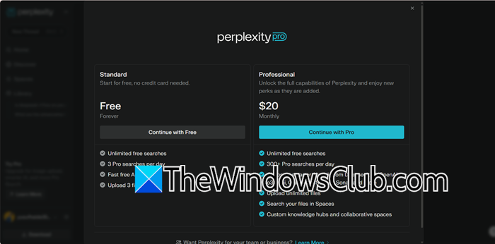 DeepSeek R1 není na Perplexity zcela zdarma. Neplatící uživatelé mají přístup k omezené verzi DeepSeek R1 prostřednictvím bezplatného plánu Perplexity, který umožňuje tři denní dotazy na úrovni Pro. Uživatelé si však pro rozsáhlejší využití musí předplatit plán Pro, který stojí 20 $ měsíčně a nabízí více dotazů. Pokud chcete získat předplatné, postupujte podle níže uvedených kroků.