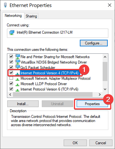 - VybratInternetový protokol verze 4 (TCP/IPv4)a klikněteVlastnosti.