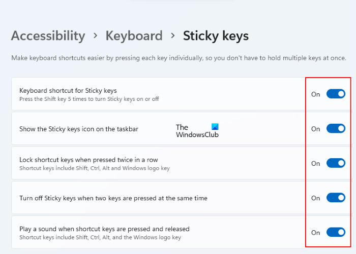 Zapnutí nebo vypnutí Sticky Keys ve Windows 11/10: