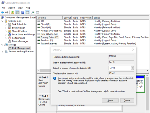 Na začátku je jedna zásadní věc, kterou byste měli vědět. Theproces smršťování vyžaduje čas. Smazání oddílu a vytvoření nového je mnohem rychlejší. To však není možnost. Ujistěte se tedy, že na jeho dokončení máte dostatek času.