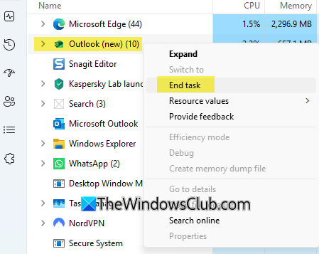 Stisknutím Ctrl+Alt+Delete otevřete Správce úloh. Vyberte Outlook (nový) a klikněte na Ukončit úlohu. Tím pole odstraníte, ale po nějaké době se může znovu objevit. Hodí se, pokud potřebujete zkontrolovat e-mail v Outlooku a nechcete, aby mezi tím něco přišlo.