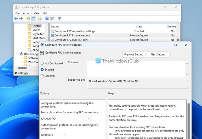 Přestože nejnovější aktualizace systému Windows 11 změnila síťový tisk z TCP nebo Named Pipes na RPC, můžete podle tohoto průvodce přepnout síťový tisk mezi TCP a RPC ve Windows 11, pokud si to přejete. Je možné zvolit TCP over RPC pomocí Editoru místních zásad skupiny a registru.